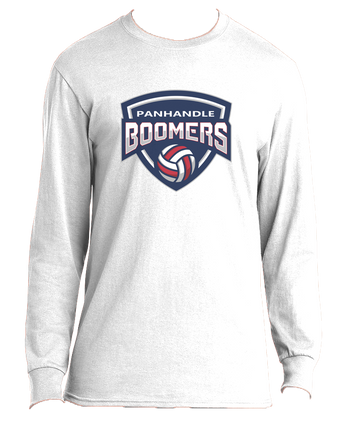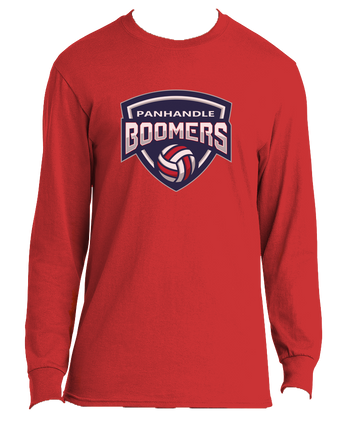 Boomers Longsleeve shirt. Select from 3 different styles: Classic, Under Armour, or Sport-Tek Performance. All styles available in Red, White, and/or Navy Blue.